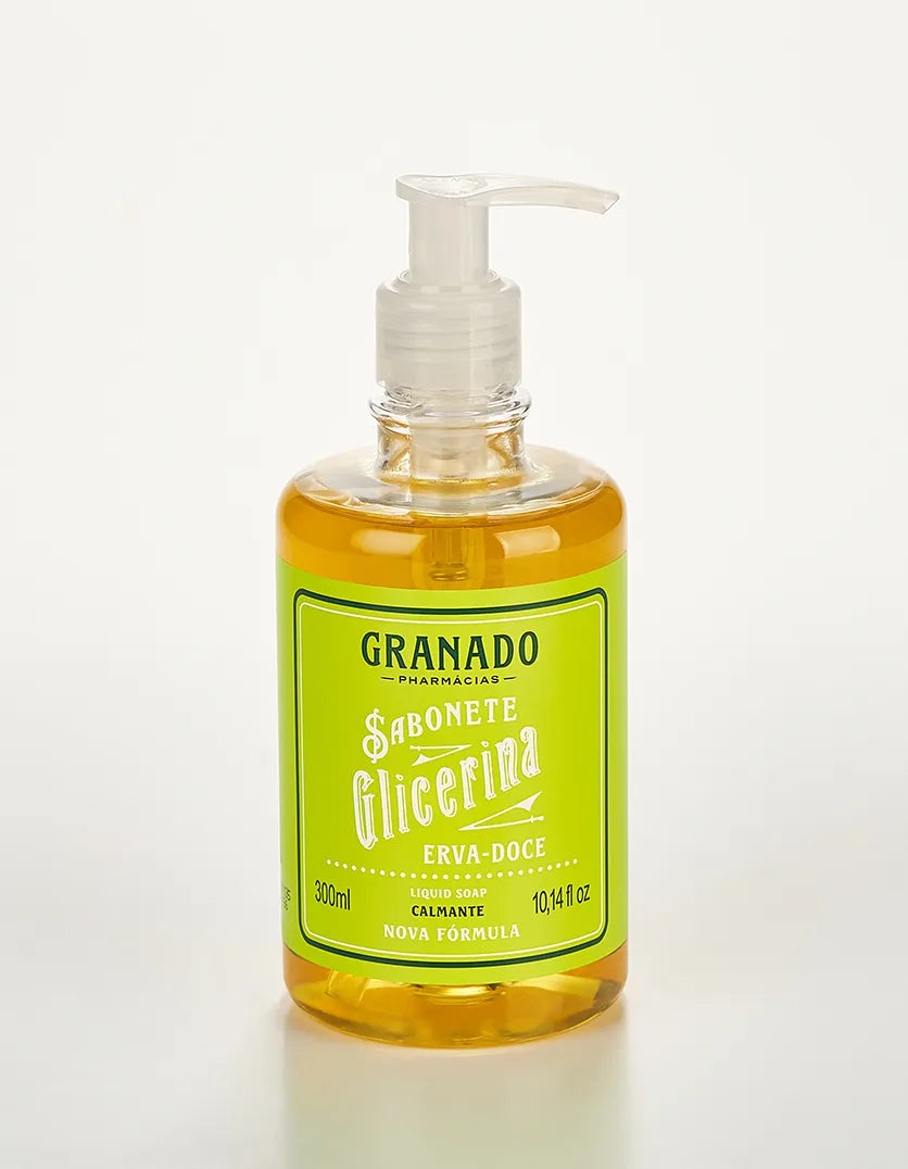 Clássico nacional, fórmula com glicerina vegetal, indicado para peles sensíveis.